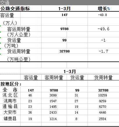 2020年公路交通指标1-3月
