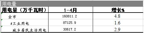 2019年用电量1-4月