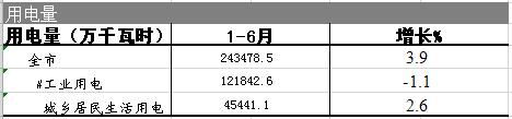 2019年用电量1-6月