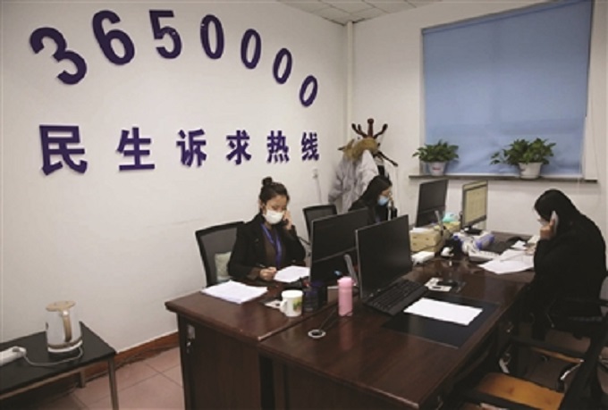 白城市督查指挥中心“一个电话解难题”民生热线服务平台的工作人员正在接听市民电话咨询。马彬/摄