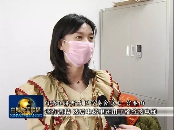工作人员介绍,疫情发生以后,白城税务局迅速行动,购买了体温测量仪、84消毒液、酒精等防控物资;加强对大楼内外、重点区域等进行消毒处理。