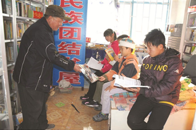 通榆县包拉温都蒙古族乡位于通榆县西南部,与内蒙古通辽市的科左前旗接壤,地域偏僻。2002年县级公路才通车,由于信息不畅,文化教育滞后,人们思维观念陈旧。张树森担任乡关工委常务副主任后,进行了认真调研分析,创办了传播先进文化的阵地——“报吧”书屋。他自筹3万多元资金,收回自家年租金7000元的150平方米临街店面房,订购64份报刊,购买2000多册图书和桌凳……免费向全乡青少年开放。那时国家农家书屋还没有普及,“报吧”书屋率先在大草原深处飘起了书香。书屋既有青少年读物,又有农村科技常识读本;既有时事新闻报刊,又有历史资料;既有涉农文件汇编,又有农村普法宣传册。“报吧”书屋开业后,少年儿童开始三五成群地来“报吧”书屋读书看报,净化提升自己的心灵,丰富知识,每年有3000多人次少年儿童来学习。张树森召集了12名乡关工委的“五老”乡贤甘当“志愿者”。他们十几年如一日,为来学习的少年儿童服务。