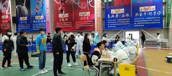 当日8时,在该校疫情防控工作领导小组的统一部署下,疫情防控各工作小组成员、学生管理教师、大学生志愿者密切配合、分工协作,有序组织在校的近6000名学生陆续来到操场等候区等候。同时,该校在体育馆内外分别设置了等候区、排队区及采样区,并开通多条检测通道,科学规划线路,分批、分流组织师生进行核酸检测采样。