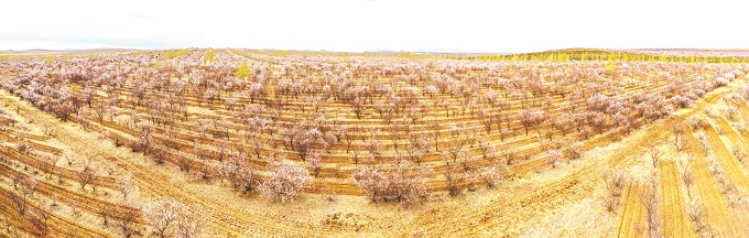 万亩杏林,杏花竞相开放,十里山岗化作一片“香雪海”。李晓明/摄影