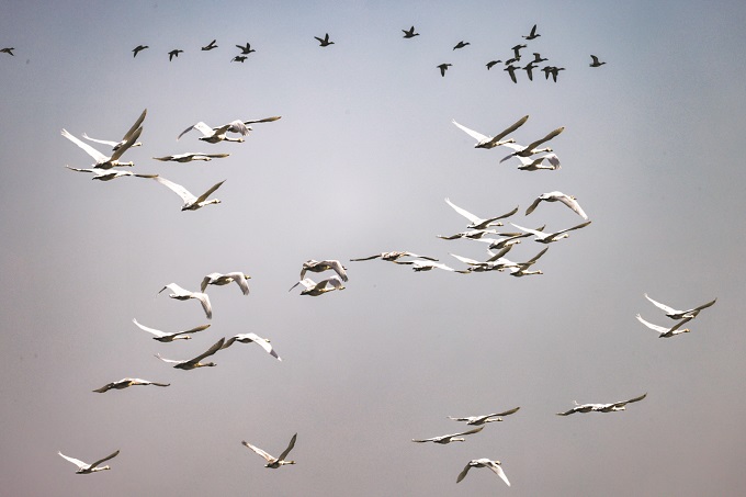 向海国家级自然保护区是国际重要湿地,近年来生态环境日益改善,越来越多的迁徙鸟类来此停歇、安家。近日,向海迎来大批南迁“贵宾”白天鹅。据了解,今年向海湿地的白天鹅迁徙停歇数量大幅度增加,单一种群就达上千只,数量之多前所未有。