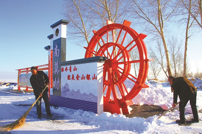 南莫村群众清理文化广场积雪。田宏 田月/摄