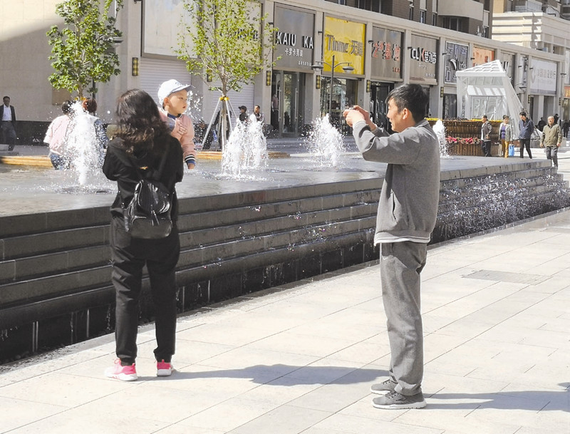 改造后的市区海明路步行街身着华裳展现在市民眼前,“脏乱差”等现象不复存在,许多人在赞叹她整洁美丽的同时,也不忘掏出手机为家人朋友拍照留念。