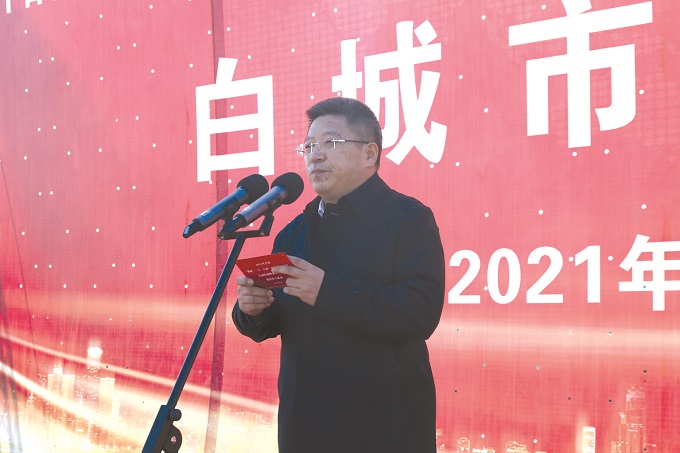 图为市委书记李明伟在白城分会场报告春季项目集中开工情况。段卫军/摄