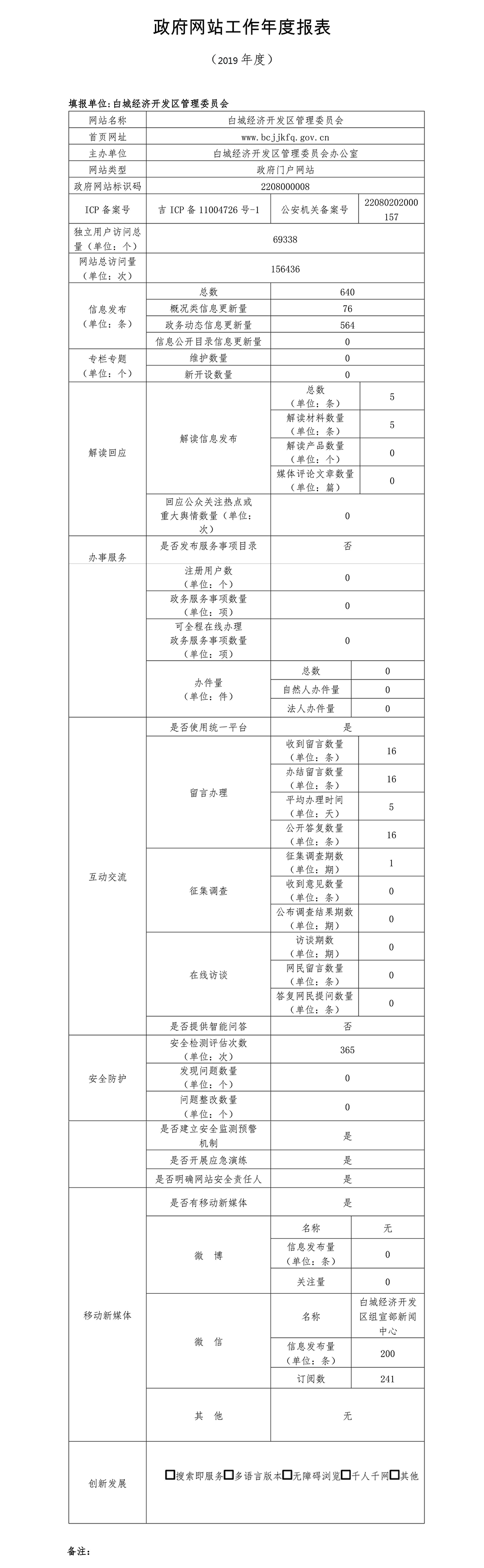 2019年白城经济开发区门户网站工作年度报表