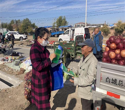 2022年10月12日,正逢白城市洮北区三合乡农村交易集会,白城市土肥站联合民革白城市直四支部、二支部开展提高科学用肥水平提升白城耕地质量、化肥减量增效、测土配方施肥技术宣传、保护黑土地提升耕地质量评价等级等农业技术宣传活动。通过拉宣传条幅、发放测土配方施肥技术宣传手册、化肥减量增效技术宣传、黑土地保护及提升耕地质量提升宣传资料手册、技术宣传袋等共计发放500余份,开展土肥技术宣传活动。