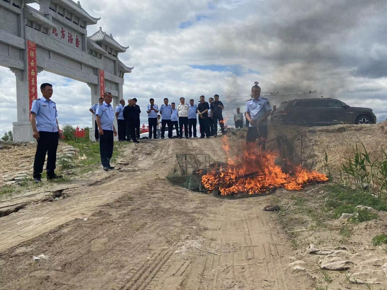 本次联合执法由省农业执法局、白城市及所属县市的执法骨干人员20余人组成,现已出动执法车辆30辆次,行程1200多公里,检查重要水域8处、活鱼商户12家,销毁禁用渔具地笼148个、三层挂网200延长米、迷魂阵300延长米,深入严重点渔区和村屯发放宣传单2000余份。