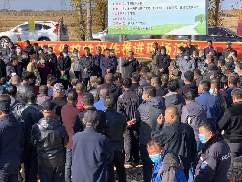 为进一步贯彻落实《东北黑土地保护性耕作行动计划(2020-2025)》,加大我区保护性耕作推进力度,10月13日,洮北区保护性耕作现场演示会在平安镇永平村召开。副区长李书文、区农业农村局主要领导以及各相关业务科室人员、各乡(镇)场主要领导、分管农业领导以及综合服务中心农业和农机负责人、村书记、农机合作社、农机大户、种植大户等600余人参会。会上共发放保护性耕作技术宣传册600余份。