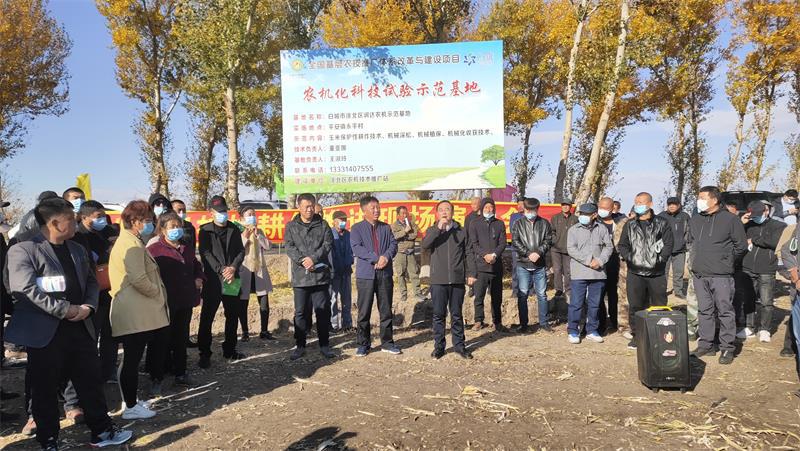 区农机管理总站站长孙旭东主持会议,向与会人员介绍我区保护性耕作的现状以及召开此次现场会的目的;李书文副区长在会上对我区保护性耕作推进工作的进一步开展做出重要讲话;区农机技术推广站站长讲解保护性耕作技术性问题和支持政策,并现场答疑解惑。技术人员全程机械化现场演示玉米收割机、深松机、免耕播种机、无人机等作业机械。