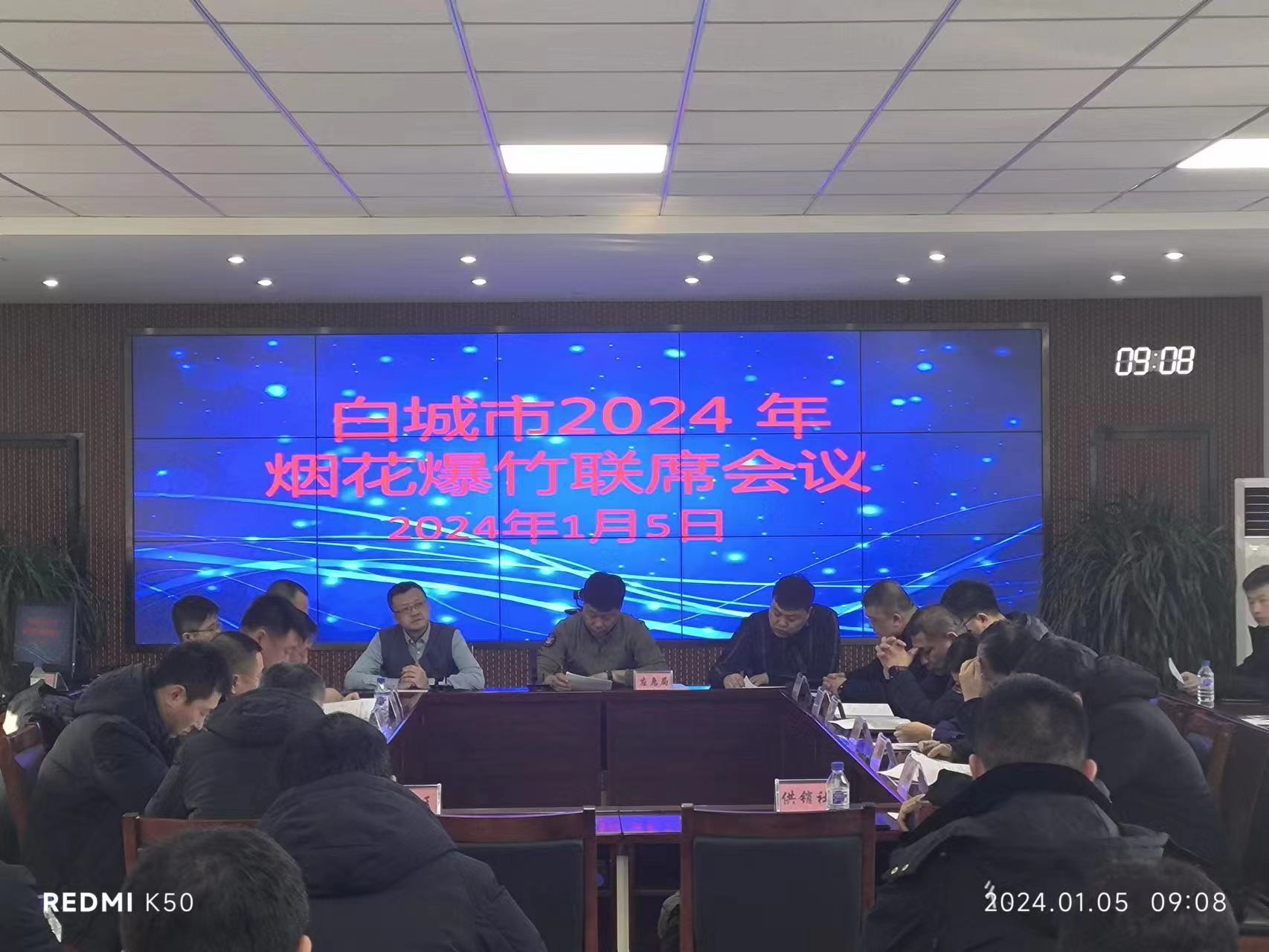 为深入贯彻落实习近平总书记安全生产重要论述和党的二十大决策部署,严格履行市委、市政府烟花爆竹销售旺季安全监管工作的总体部署,确保全市烟花爆竹销售旺季安全生产形势持续稳定。2024年1月5日,白城市召开2024年烟花爆竹销售旺季联席工作会议。各县(市、区)、开发区(园区)应急管理(安监)局、市公安局、市交通运输局、市市场监督管理局、市消防救援支队、市城市管理行政执法局、市供销社、市邮政管理局分管负责人和业务科长、各烟花爆竹批发企业主要负责人参会。