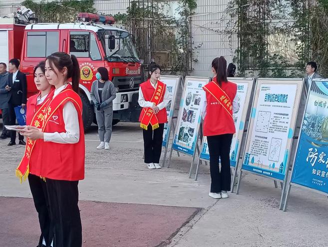 最后开展的是防灾减灾科普宣教和救援器材展示。参加演练活动各单位向学校赠送防震减灾科普图书2000余份,并通过设置防震减灾宣传展板、画廊和消防救援支队救援器材展示区,开展灾害风险基本知识和防范应对技能宣传教育,提高师生主动避灾避险的意识和能力。