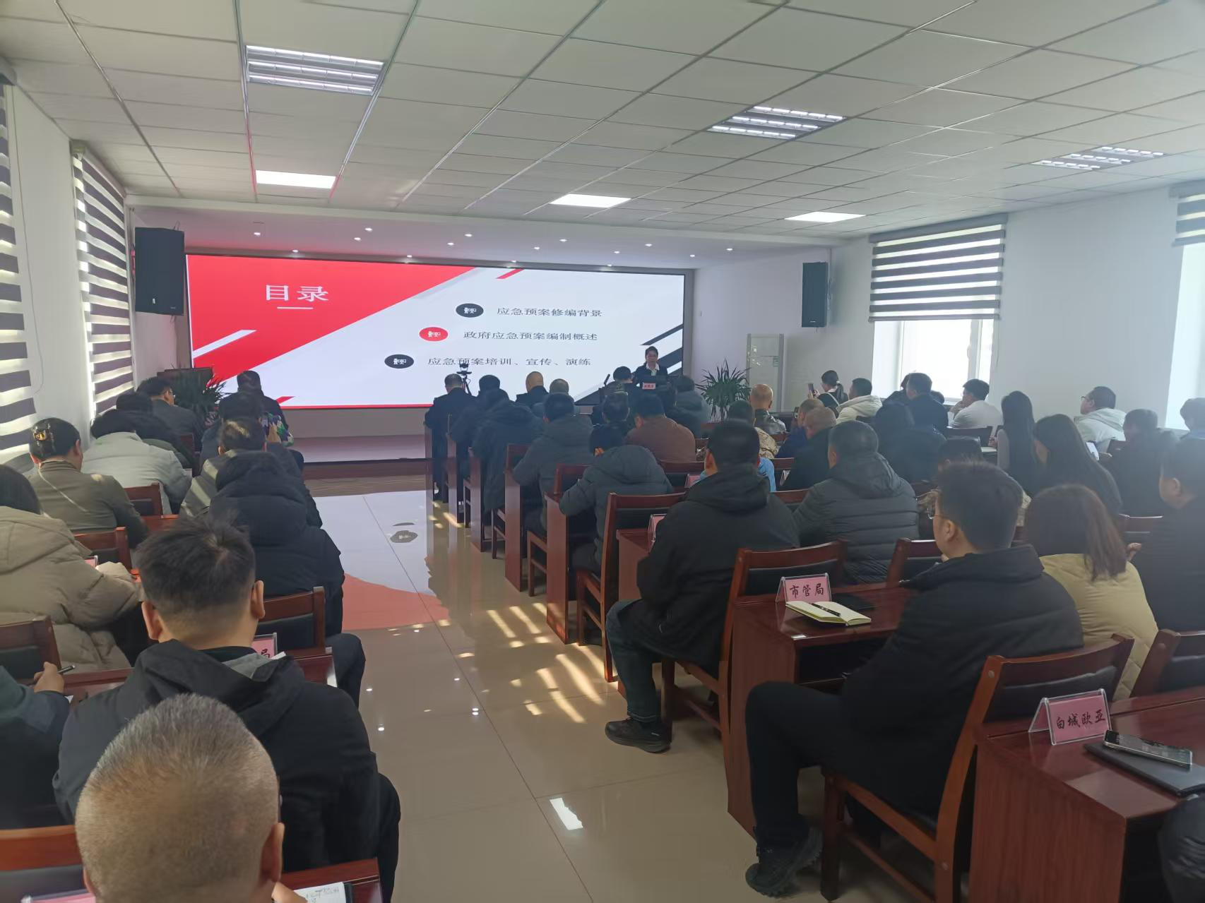 培训突出实用性、规范性、指导性,重点围绕三大板块开展讲解:一是解读《白城市突发事件总体应急预案》编制工作;二是结合年度工作部署,围绕应急救援队伍建设、预案实操演练、快速响应机制等内容讲解,推动应急预案从“纸面”走向“实战”;三是聚焦风险评估、资源调查、案例分析,讲解工作方法,破解编制中的专业难题。