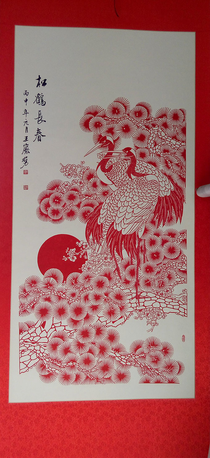 通榆县剪纸,最具代表性的当数王岩的剪纸作品。1989年,12岁的王岩凭其剪纸作品《加油》,在“春芽杯”首届国际少年儿童剪纸大赛中荣获佳作奖;剪纸《百鸟图》参加我省首届小学生艺术节美术作品展荣获二等奖、在东三省美术展中入选并被收藏。她的剪纸《一百单八将》、《八仙过海》、《金陵十二钗》等在省级以上展览中均获一等奖。1993年,王岩被省文化厅授予“民间剪纸艺术家”称号。为继承和发扬通榆的民间剪纸工艺,让传统民间文化再现光彩,2002年2月10日,通榆县民间剪纸协会正式成立。目前,通榆县的民间剪纸艺术家已经发展到50多人,用他们手中的剪刀绘制着胸中的锦绣河山。