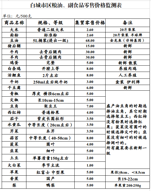 2025年1月6日白城市区粮油、副食品零售价格情况