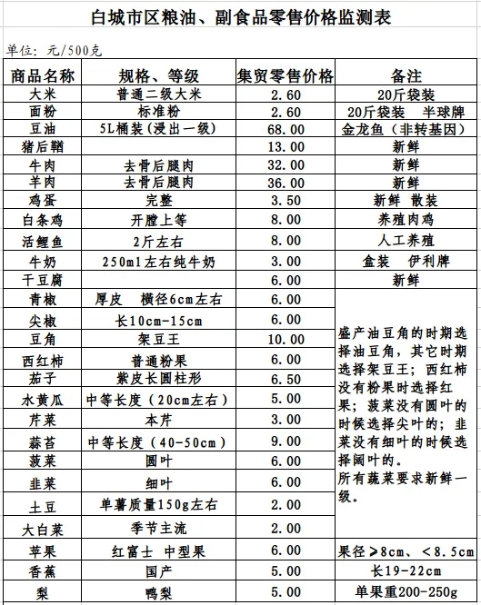 2026年1月12日白城市区粮油、副食品零售价格情况