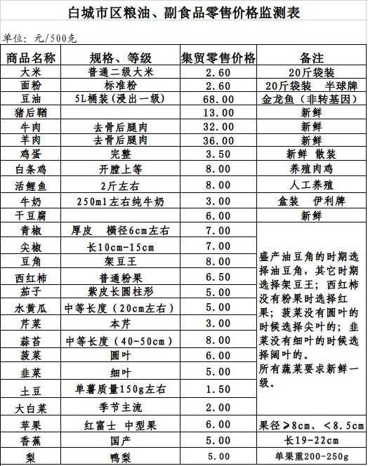 2026年1月19日白城市区粮油、副食品零售价格情况