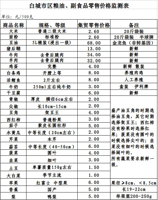 2025年9月8日白城市区粮油、副食品零售价格情况