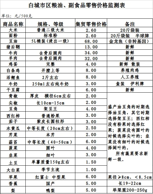 2025年9月15日白城市区粮油、副食品零售价格情况