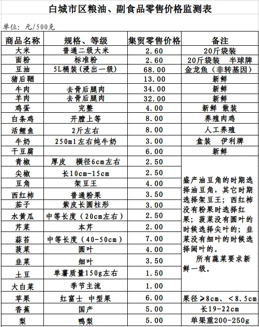 2025年9月29日白城市区粮油、副食品零售价格情况
