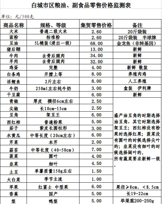 2025年10月20日白城市区粮油、副食品零售价格情况