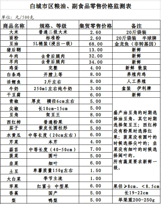 2025年11月3日白城市区粮油、副食品零售价格情况