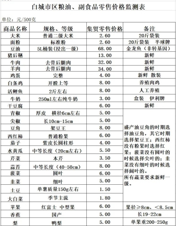 2025年12月8日白城市区粮油、副食品零售价格情况
