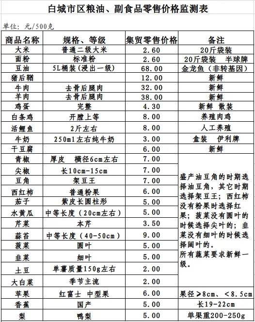 2026年2月9日白城市区粮油、副食品零售价格情况