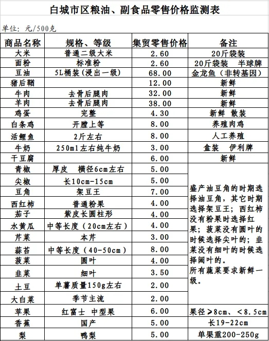 2026年3月2日白城市区粮油、副食品零售价格情况