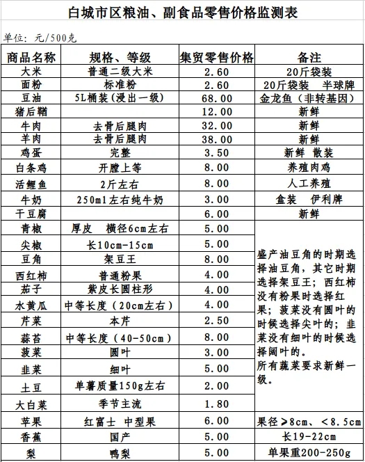 2026年3月16日白城市区粮油、副食品零售价格情况