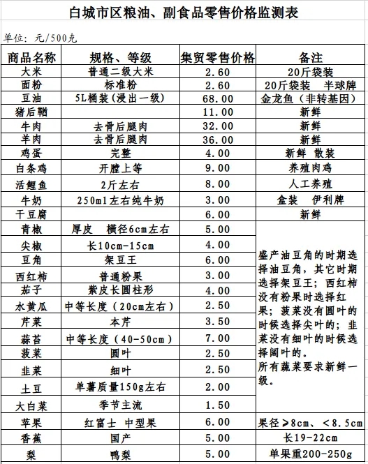 2026年4月27日白城市区粮油、副食品零售价格情况