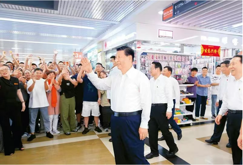 2023年9月20日至21日,中共中央总书记、国家主席、中央军委主席习近平在浙江考察。这是20日上午,习近平在义乌国际商贸城考察时,同商户亲切交流。 新华社记者 李学仁/摄