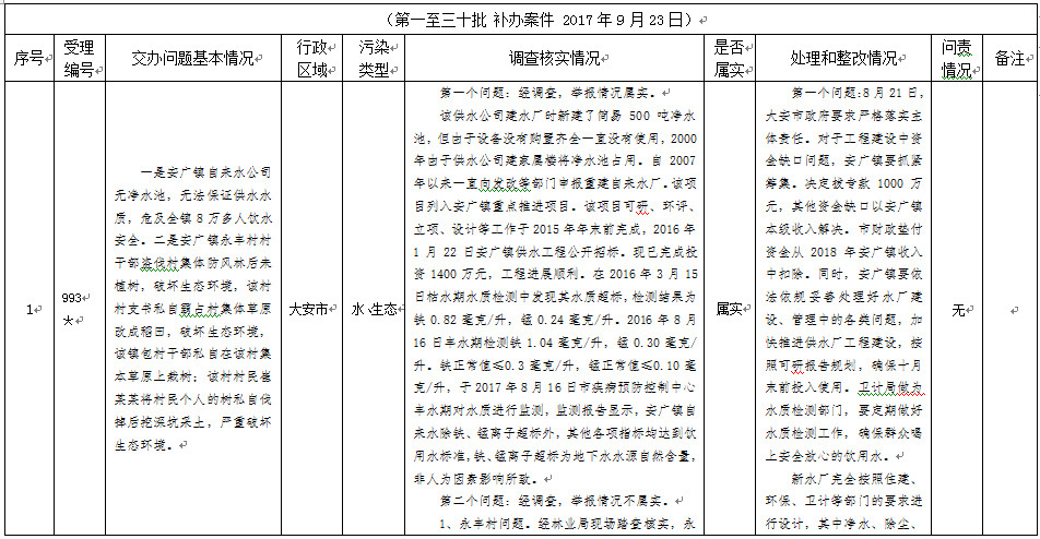 白城市群众信访举报转办和边督边改公开情况一览表(第一至三十批补办案件2017年9月23日)