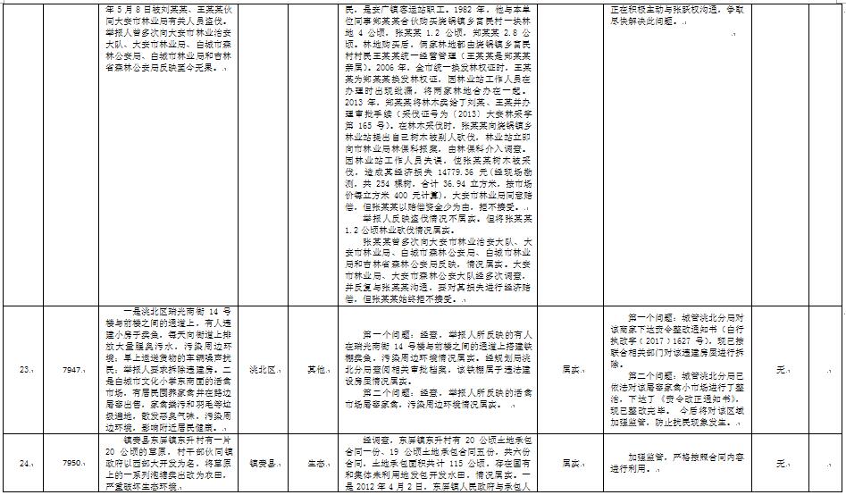 白城市群众信访举报转办和边督边改公开情况一览表(第三十六批2017年9月26日)